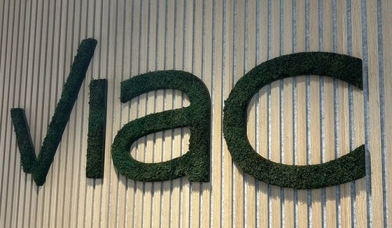 Hoewel het VIAC logo zelf ongewijzigd is, heeft het een groene, duurzame omlijsting gekregen en hangt het vanaf vandaag aan een wand in ons kantoor.