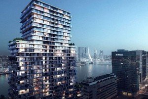 Waar voorheen het kantoorgebouw van Erasmus Verzekeringen stond aan de Boompjes in Rotterdam, bouwt Besix in opdracht van Provast "The Terraced Tower".