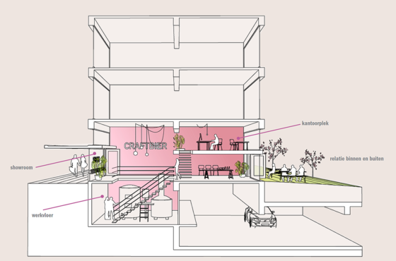 In de plint op de begane grond is ruimte voor kleine commerciële ruimtes.