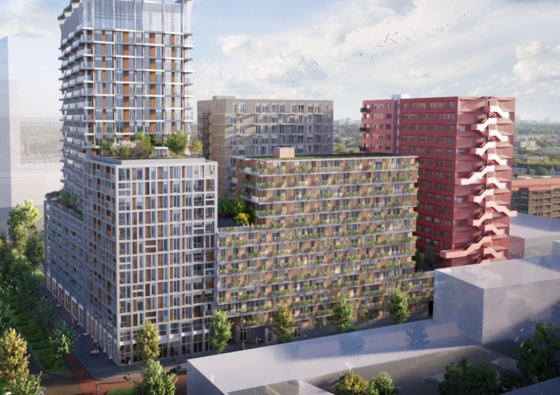Blok 4 krijgt een gebouwhoogte van 42 meter en wordt voorzien van 89 woningen.